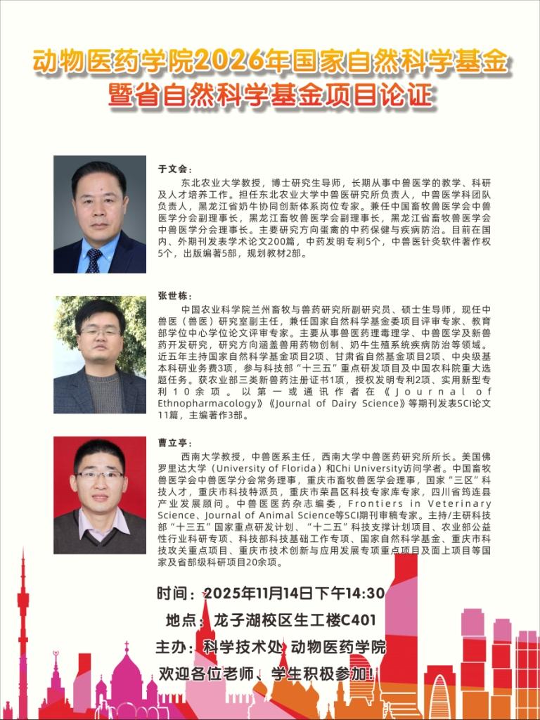 学术活动海报:2026年国家自然科学基金暨省自然科学基金项目论证(动物医药学院)